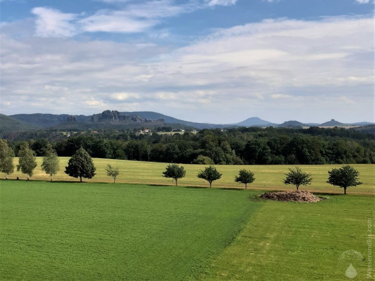 Bei Rathmannsdorf, einem kleinen Dörfchen oberhalb von Bad Schandau befindet sich ein Aussichtsturm. Auf der 15 Meter hohen Aussichtsplattform bietet sich ein Rundumblick, der nahezug die Gesamte Sächsische Schweiz umfasst. Viele Gipfel und Berge sind nur aus der Distanz in ihrer ganzen Schönheit sichtbar – auch wenn diese aus der Nähe nochmal eine ganz andere ist. Vor allem die Form und Struktur der Tafelberge mit ihren Schutthalten und Felsköpfen zeichnet sich hier ganz deutlich ab.
