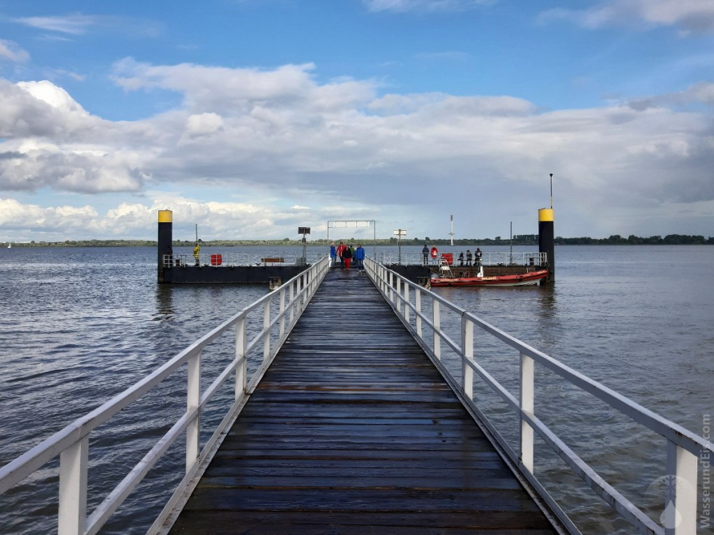 Nordseeflair am Schiffsanleger von Krautsand. Innerhalb der Sommersaison kann man von hier aus die Insel erreichen und verlassen, sowie die Unterelbe erkunden.