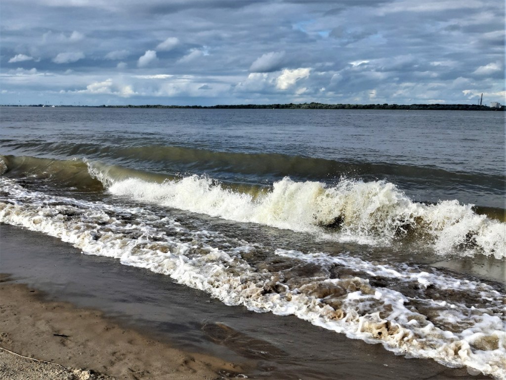 Die großen Schiffe saugen den Sand förmlich vom Strand. Große Brecher, ausgelöst vom enormen Tiefgang erledigen den Rest. Unbeaufsichtigtes Baden ist bereits verboten.