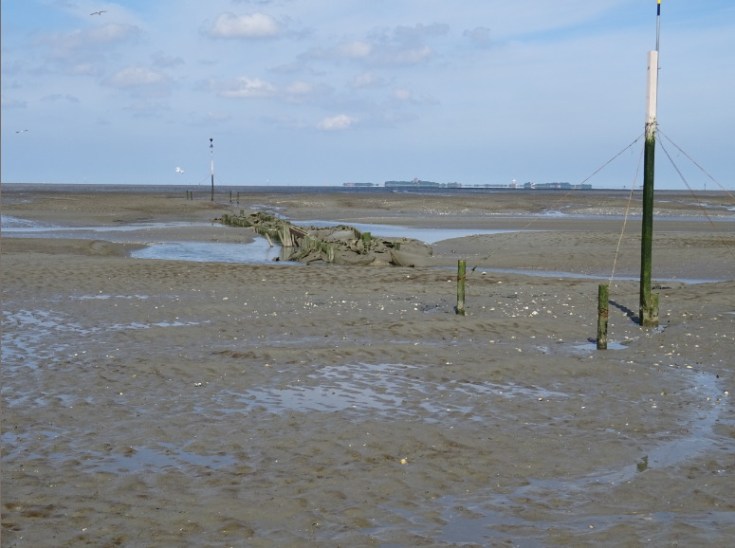 Fotos: mit freundlicher Genehmigung von Peter Roland. Die Fotos wurden bei extremem Niedrigwasser gemacht, ca. 3/4 m unter normal (Springtide und Ostwind). Bei einer normalen Flut ist der Wasserstand ca. 3 – 4 m höher.