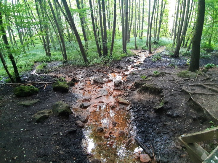 Kurz vorm Dreikönigstein verlassen wir den Hermannsweg, biegen links am und steigen hinab ins Bocketal. Zunächst etwas abenteuerlich, steil über einen ausgewaschenen, steinigen Pfad. Anschlißend flacher durch ein Seitental. Hier haben Mensch und Klimawandel ganze Arbeit geleistet. Klimawandel – im Form des Borkenkäfers, anschließend Kettensägen und Schweres Gerät haben hier für einen Kahlschlag gesorgt. Die Fichten sind gewichen, geblieben ist ein Kahlschlag. Ganze Hänge sind entwaldet. Kein schöner Anblick – ganz ähnlich wie vor fast eine Jahr im Harzer Kästental.