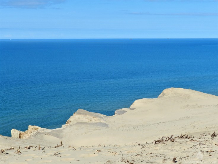 Unser erstes Ziel sind natürlich die Dünen mit dem bekannten Leuchtturm. Währen der erste Kilometer bis zum Dünenrand noch über einen halbwegs befestigten Pfad führt, wird es nun anstrengender. Am steilen, weichen Sand gilt das Motto zwei Schritte vorwärts laufen – einen wieder zurückrutschen. Auch auf der flacheren Kuppe der Düne ist das gehen beschwerlicher als üblich – aber was sage ich, das ist ja bekannt.