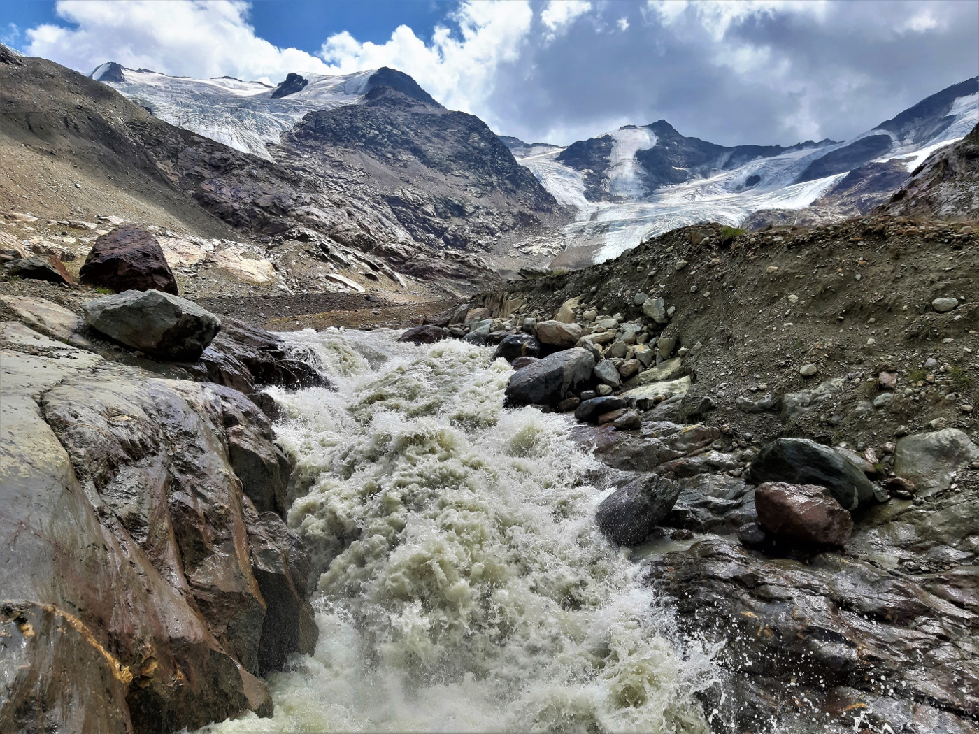 Nach einem wolkenverhangenen und mäßig anstrengenden Anstieg stehen wir nun über dem Talschluss. Vor uns liegt nun das Gletschervorfeld. Kleine Seen und Tümpel, Sand und Geröll. Dahinter der Eisrand und die Gletscherzunge des Ghiacciaio dei Forni. Bis zum Rand der Gletscherzunge sind es noch gute 1,5km. Kaum zu glauben, noch vor 30 Jahren floss das … Wandern: Über den Ghiacciao dei Forni zum Rifugio Cesare Branca (2) weiterlesen
