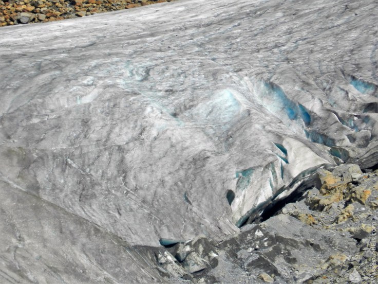 Wir steigen nun zum Gletscherbach hinab, in ein Gelände, dass noch bis vor 30 Jahren eisbedeckt war. Der Eisrand wird zwar sichtbar, liegt aber noch weit entfernt. Der Gletscher gleicht eher einem Rinnsal als einem Eisstrom. Der Gepatschferner gehört zu den am schnellsten schmelzenden Gletschern in den Alpen. Allein in den vergangenen 20 Jahren hat er mehr als einen Kilometer an Länge eingebüßt. Bis zur Mitte des Jahrhunderts könnte er fast vollständig abgeschmolzen sein. Bis vor kurzem konnte ich mir das kaum vorstellen, bei einer Eisfläche von über 15km². Leider zeigen Sommer, wie der aktuelle dann aber doch, dass der Klimawandel viel schneller voranschreitet, also wir uns das vorstellen können.