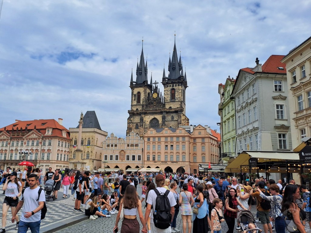 In die Vorbereitung unseres Tagesausflugs haben wir so gut wie keine Vorbereitungszeit gesteckt. Lediglich ein P&R Parkplatz dient dazu uns mit der Metro schnell in und aus dem Stadtzentrum zu bringen. So landen wir zu Beginn auf dem Wenzelsplatz (Václavské náměstí), einer 700m langen Prachtstraße vor dem Nationalmuseum. Schon hier zeigt sich Prag von seiner schönsten Seite., auch wenn die Luft heiß und stickig, ab und an auch trubelig voll ist. Anschließend ziehen wir weiter durch die Gassen der Altstadt, lassen uns zum zentralen Platz, dem Altstädter Ring treiben. Hier ist es zwar voll, aber nicht unangenehm. Wir stehen nun im Herzen der Stadt, vor dem Altstädter Rathaus und der Theynkirche. Zwei der bedeutendsten Baudenkmäler der Stadt – wobei ich da einwerfen muss, dass das ohne Zweifel auf die Gesamte Innenstadt zutrifft. Wir stellen fest, dass selbst das von uns so geliebte Wien in Sachen Außeneindruck der tschechischen Hauptstadt nicht das Wasser reichen kann. Auch wenn, zumindest aus unserer Sicht, so ikonische Bauwerke wie etwa die Hofburg fehlen und damit auch ein wenig an Faszination fehlt.