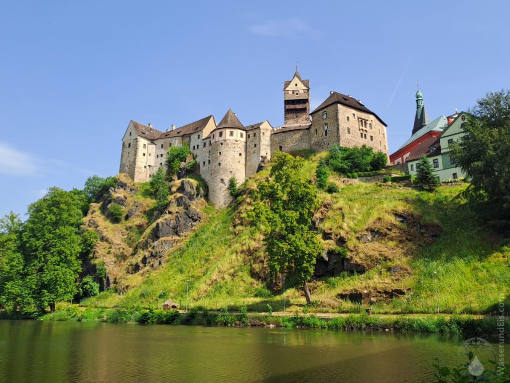 Auf dem Rückweg umrunden wir die Stadt auf einem Wanderweg entlang der Eger. Von einigen Aussichtspunkten bietet sich hier noch einmal ein überwältigender Blick auf die Altstadt von Loket und die Burg Festung. Ein lohnender Ausflug.