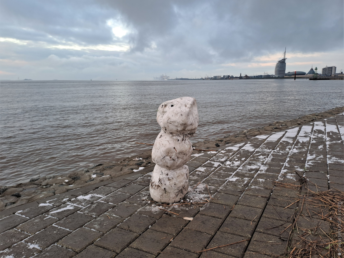Schnee ist einfach etwas tolles. Ich liebe Schnee. Er verzaubert die Welt, bringt Lichts ins Dunkel. Er schluckt Lärm und Geräusche – und natürlich ist er kalt. Wenn ich auf meine bisherige Zeit in Bremerhaven zurückblicke, ist es trotz Klimawandels gar nicht so selten, dass sich Bremerhaven und die Küstenregion in ein weißes Kleid hüllt. Zwar ist die weiße Pracht meist matschig und schnell wieder verschwunden – um so schöner ist aber die weiße Zeit. Das gilt um so mehr für die Vorweihnachtszeit. Anbei einige winterliche Eindrücke.