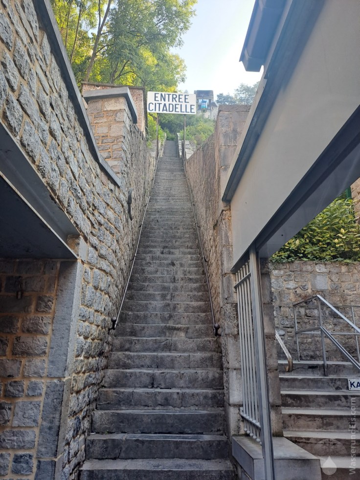 Für alle die auf Superlative stehen, es sportlicher Mögen und keine Seilbahnfans sind: Es gibt auch einen Fußweg. Die Treppe zählt 408, teils hohe Stufen, ist die längste Belgiens. Tiefblicke sind beim Aufstieg inklusive, die Seilbahnfahrt zahlen die Treppensteigenden allerdings mit.