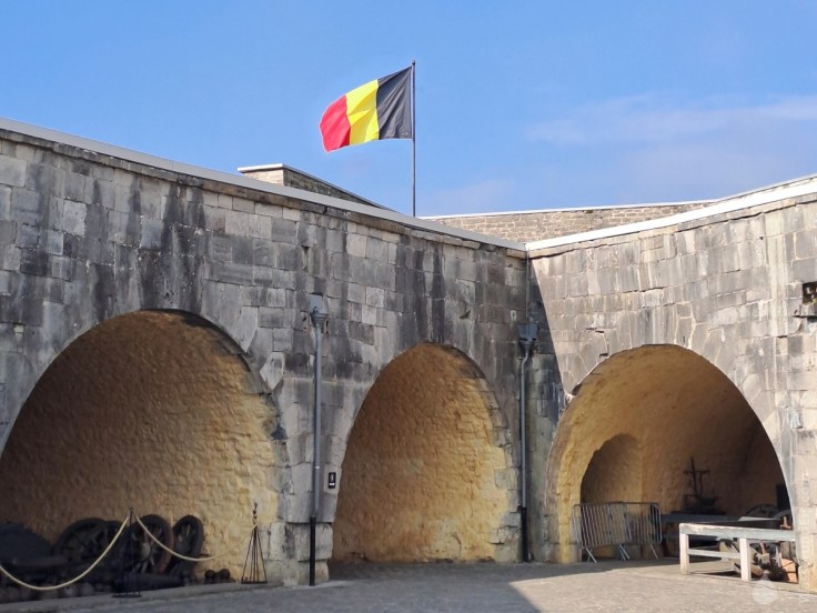 Die blanken Kalksteinfelsen bieten nicht nur einen wunderbaren Ausblick, sie sind auch schwer einzunehmen. Deshalb eignen sie sich perfekt zur Anlage von Schlössern, Burgen – aber auch von Festungen. Die Ursprünge der Festung von Dinant (Citadelle de Dinant) liegen im 11. Jahrhundert. Die heutige Festung entstand im Anfang des 19. Jahrhunderts in der Zeit der niederländischen Besetzung Belgiens. Sie zählt neben den Zitadellen von Namur und Huy zu den sogenannten Maasfestungen. Nach der Unabhängigkeit und Staatsgründung Belgiens wurde sie entmilitarisiert und ist heute ein Museum und Aussichtspunkt. In den beiden Weltkriegen spielte die Festung noch mal eine militärische Rolle. Bei Kämpfen um die Zitadelle von Dinant starben im 1. Weltkrieg etwa 70 Soldaten. Im 2. Weltkrieg verschanzten sich die Franzosen in der Festung, räumten diese nach dem Vorrücken der Wehrmacht aber schnell. Zum Kriegsende hin, beim Vorrücken der Allierten, wurde die Zitadelle bombardiert. Damit endete die militärische Geschichte der Festung, hoffentlich für immer.