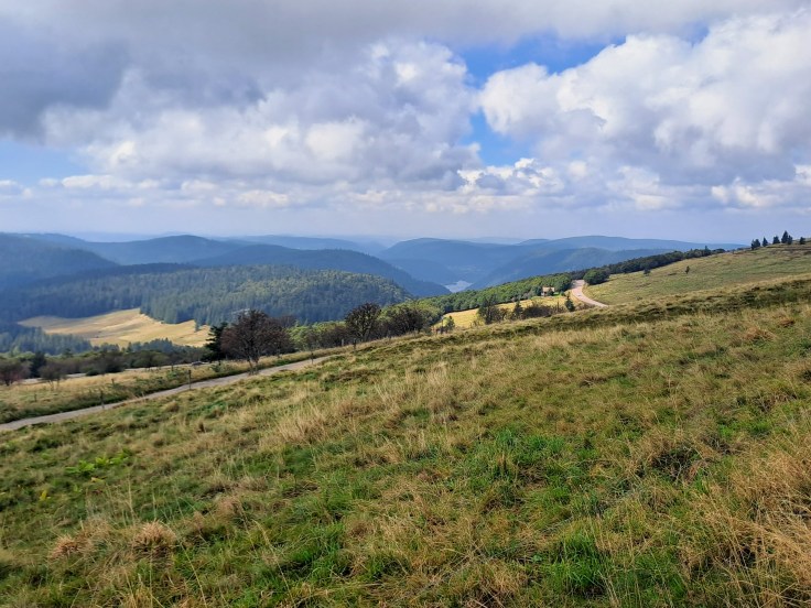 Das konkrete Ziel war der Hohneck, der mit 1.363m dritthöchste Gipfel der Vogesen. Diese bietet bei gutem Wetter eine herrliche Aussicht auf das Rheintal und den benachbarten Schwarzwald, unser eigentliches Tagesziel. Gleich nebenan liegt der Col de la Schlucht – eine von der Tour de France bekannte Passhöhe. Ganz in der Nähe soll Udo Bölts 1997 auch den berühmten Satz „Quäl dich du Sau“ gesagt haben, also Jan Ullrich auf dem Weg zu seinem Tour-Sieg noch einmal ins Hintertreffen geriet. Der Hohneck bildet außerdem den Kulminationspunkt des Munstertals, dass für seinen Käse berühmt ist. Die Milch für diesen Käse stammt von den subalpinen Almwiesen des Vogesenkamms. Wir erinnern und, Dauerwerbesendung Tour de France…