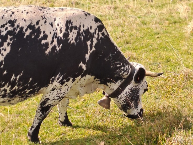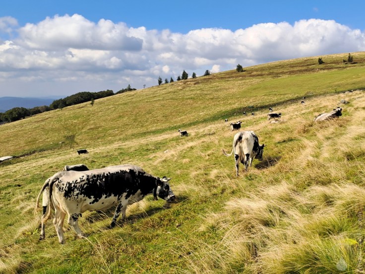 Für den mangelden Blick entschädigen uns gleich neben an die weiten Wiesen. Schon von weitem ist das Glockel-Klingeln der hier auf den Almwiesen grasenden Kühe zu hören – herrlich. Kühe? Nein! Vogesenrinder! Auf diesen saftigen und aromatischen Wiesen weiden die Rinder, deren Milch im Anschluss zum berühmten Munsterkäse verarbeitet wird. Dazu aber später – wir genießen erst Mal die Atmosphäre.