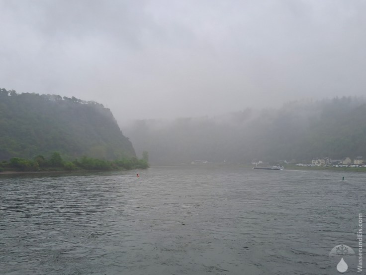Petrus ist uns weiterhin nicht gut gesinnt. Die Wolken hängen tief, es ist trüb und regnet. Dazu passend werden wir den Rhein nun trockenen Fußes erkunden – vom Schiff aus. Mit der Loreley-Linie geht es von Boppard über St.Goarshausen zum berühmtesten Felsen am Mittelrhein, der Loreley.