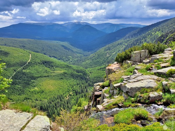 Aussichtsreiche Rundwanderung über den Kamm im westlichen Riesengebirge - vollständig auf tschechischem Boden. Über die Steilabbrüche der Elbgruben zum Pantschefall, dann via Elbfallbaude zur Elbquelle und schließlich über die Martinsbaude zurück nach Spindlermühle. Schnell und bequem: Mit dem Sessellift von auf die Goldhöhe. Blick auf das Skigebiet von Spindlermühle und St.Peter. Auf den Medvědín und... Continue Reading →